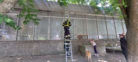Рятувальники 16-ї державної пожежно-рятувальної частини за допомогою драбини потрапили на дах, дістали кота та передали його власниці.