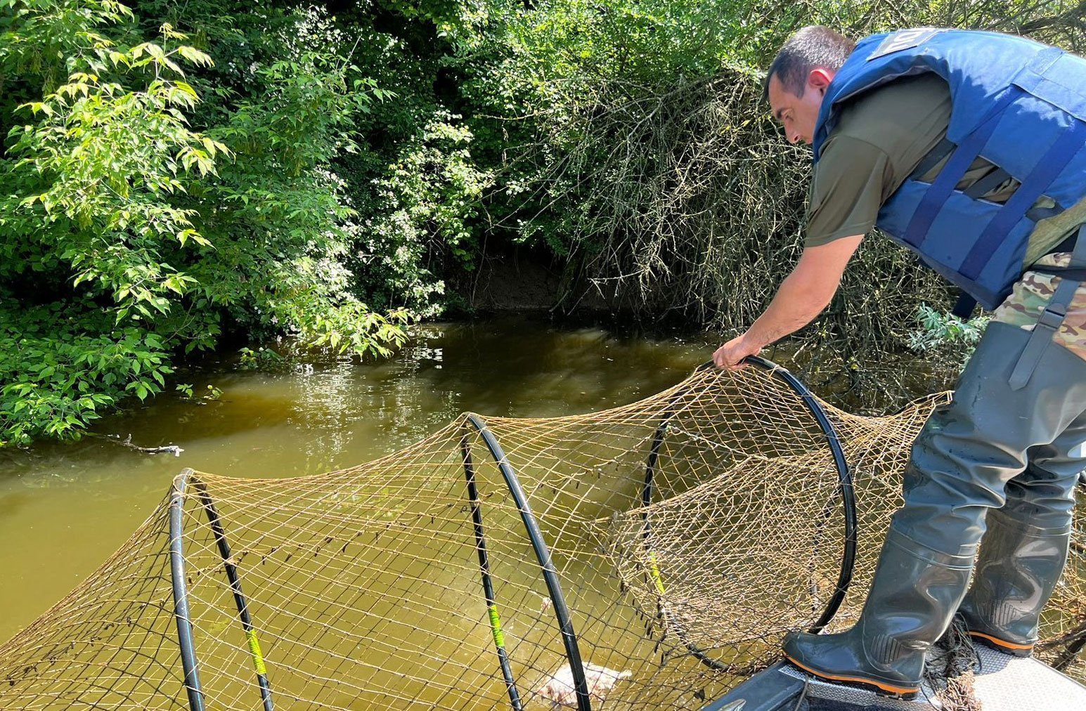 У суботу, 27 травня, у селі Дем’янівка, Оболонської громади, під час профілактичного рейду на річці Сула водні поліцейські помітили 26-річного чоловіка, який виловлював рибу за допомогою 30 метрів риболовних сіток. За попередніми підрахунками фахівців, сума завданих державі збитків складає понад 135 тисяч гривень.