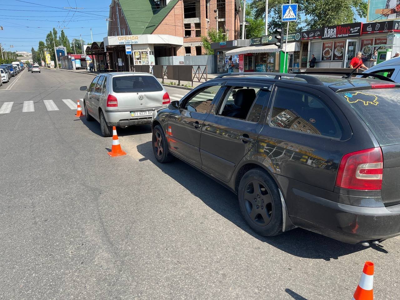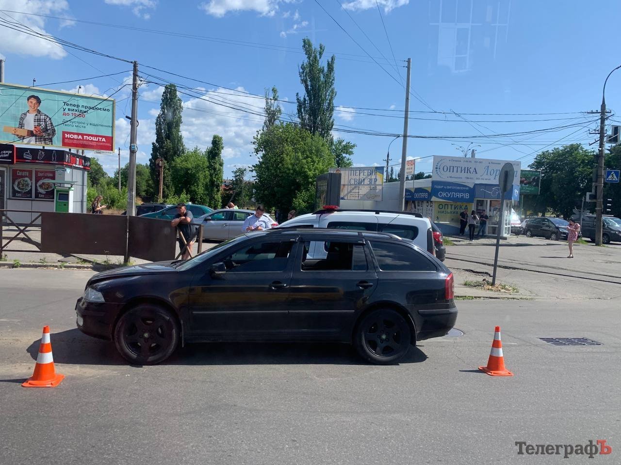 За інформацією Кременчуцького районного управління поліції, близько 9-ї ранку 32-річний водій Skoda Octavia повертаючи з вул. Юрія Руфа на вул. Халаменюка не дотримався безпечної дистанції та допустив зіткнення з Volkswagen Pointer, під керуванням 27-річного водія.