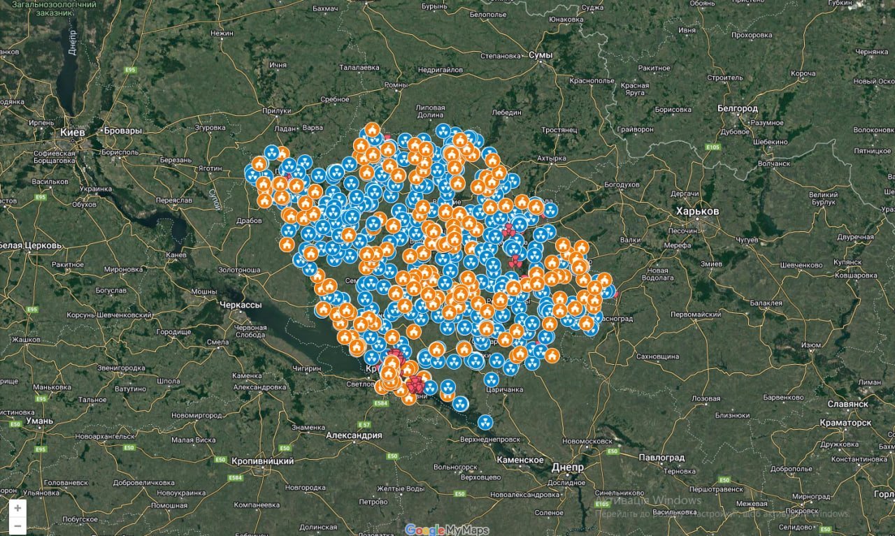 На карті розміщені сховища та захисні споруди.