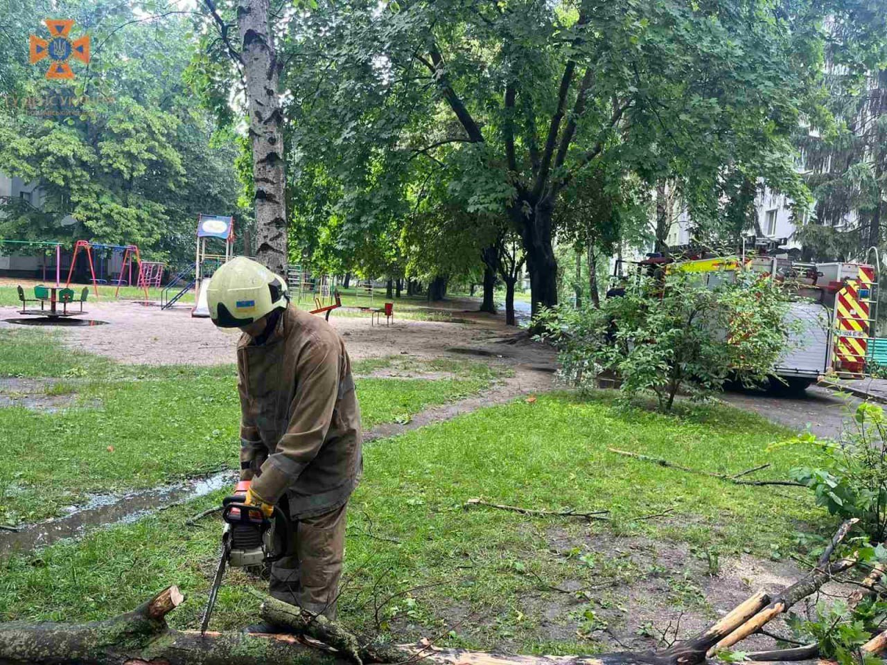 21 червня о 16.57 у пров. Джохара Дудаєва, просп. Лесі Українки та вул. Володимира Великого через несприятливі погодні умови попадали дерева. про це повідомили у пресслужбі ДСНС.