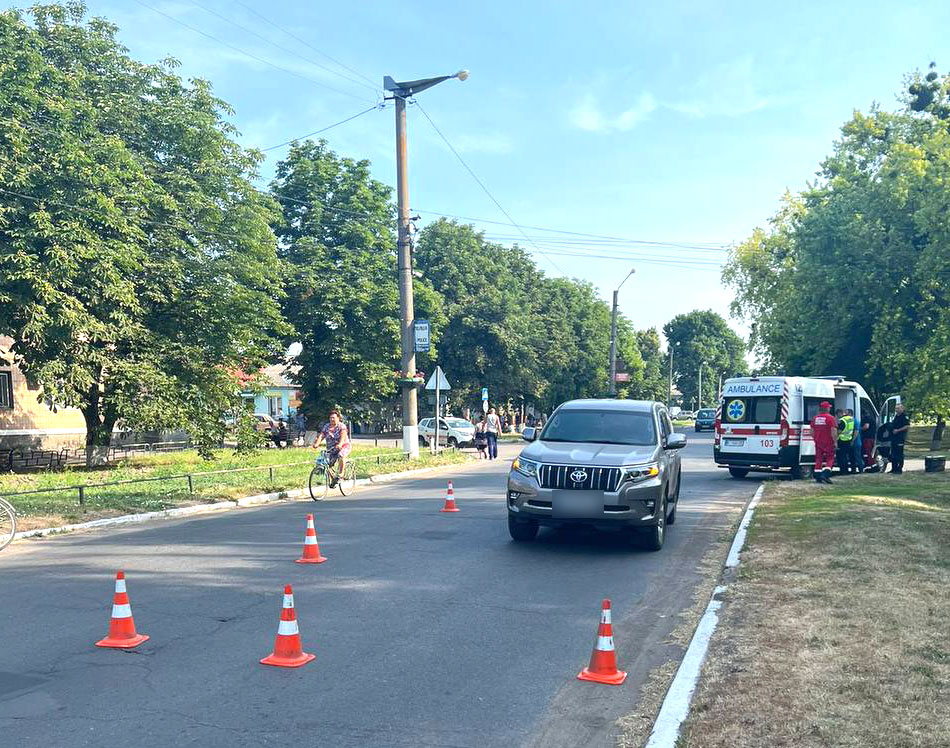 Близько 7.50, на вулиці Центральній в смт Оржиця, Лубенського району Land Cruiser Prado, під керуванням 66-річного водія, зіткнувся з велосипедом, яким кермувала 75-річна місцева. Унаслідок зіткнення жінка отримала травми та доставлена до місцевої лікарні.