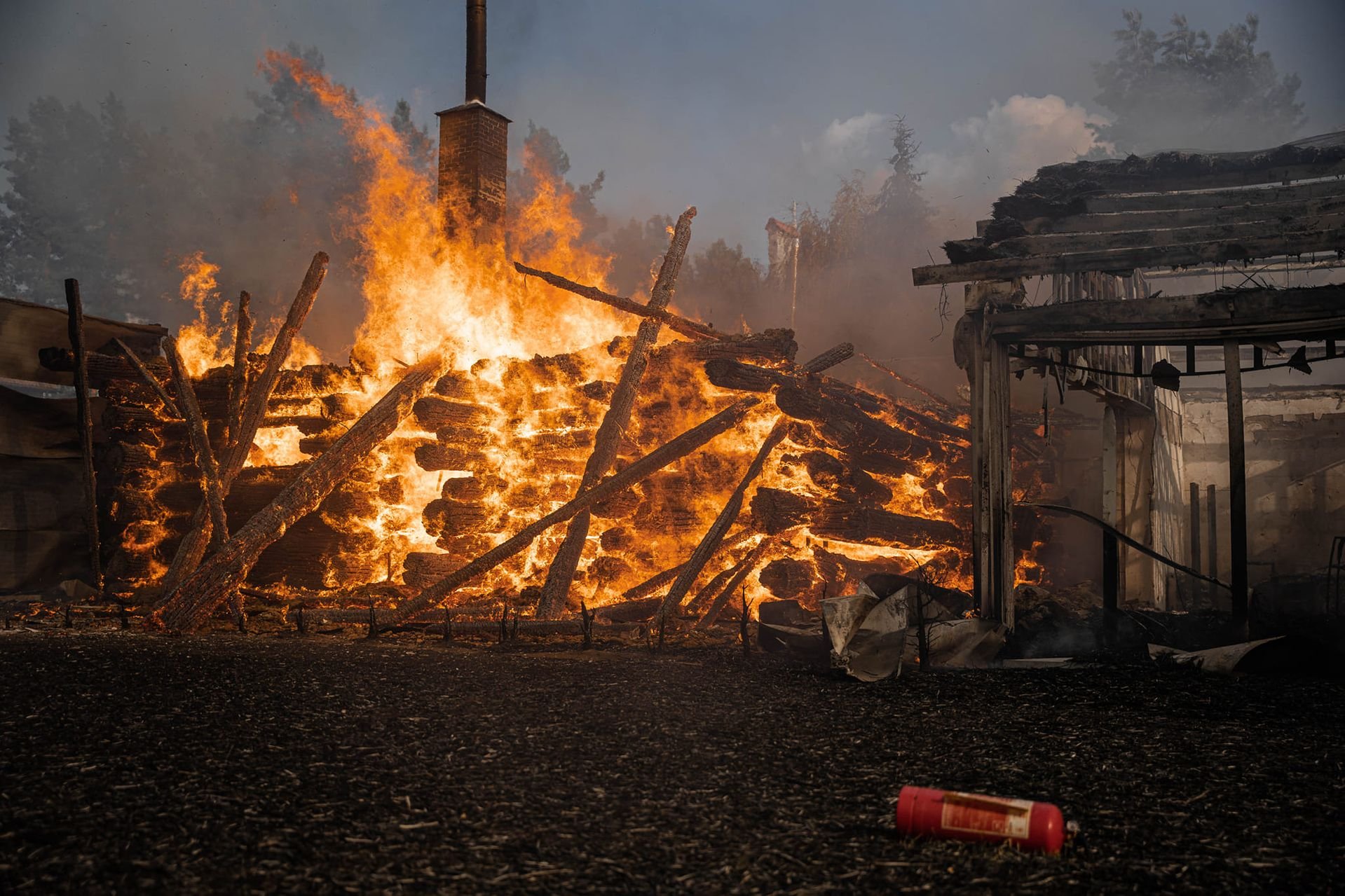 Загинуло 9 голів свійських тварин та 200 кілограмів зерна. Врятовано поруч розташований житловий будинок.