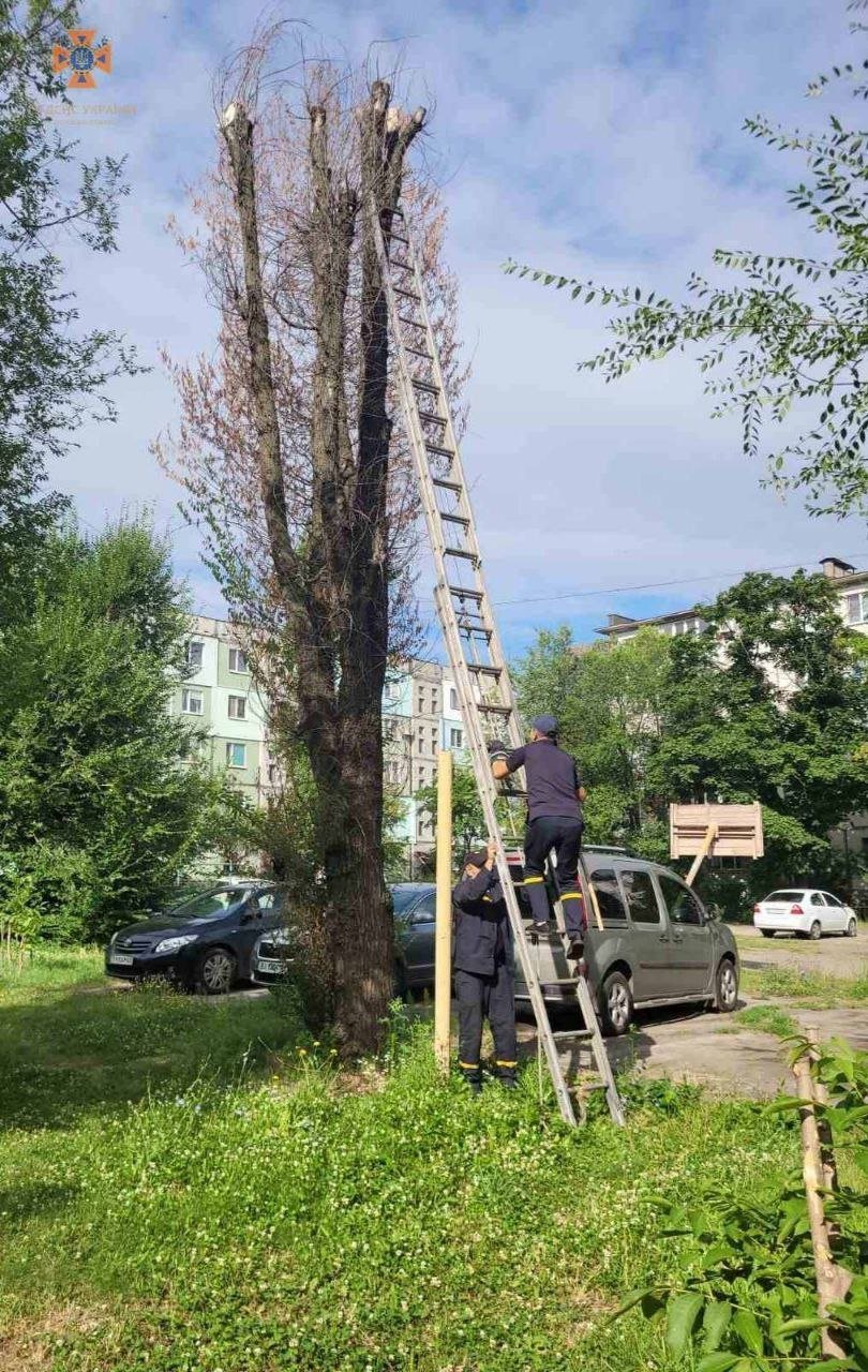 А о 8.58 — надійшло сповіщення про те, що на вул. Добровольського кіт заліз на дерево та не зміг самостійно спуститися.