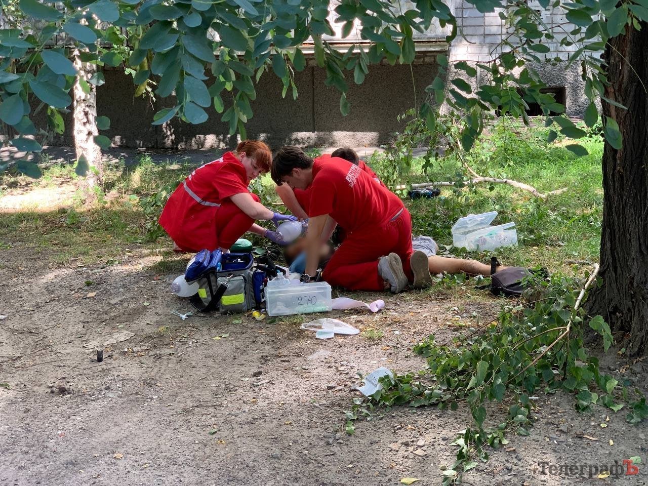 Журналісти «Кременчуцького Телеграфа» на місці. Працівники екстреної медичної допомоги реанімують чоловіка.