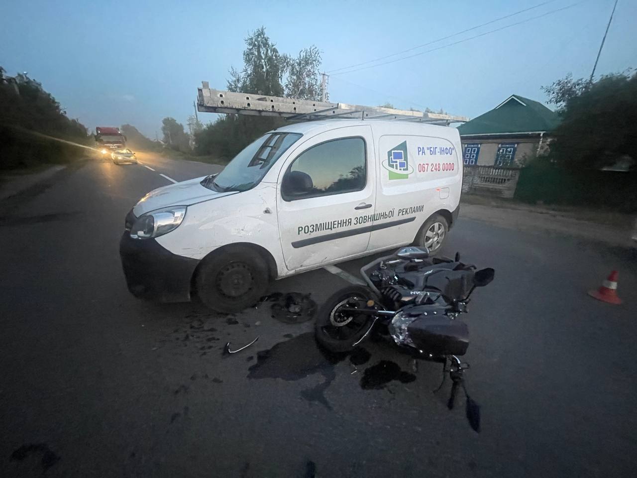 22-річного мотоцикліста госпіталізували до лікарні. Попередньо він отримав легкі травми, але його ще оглядають медики.