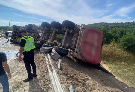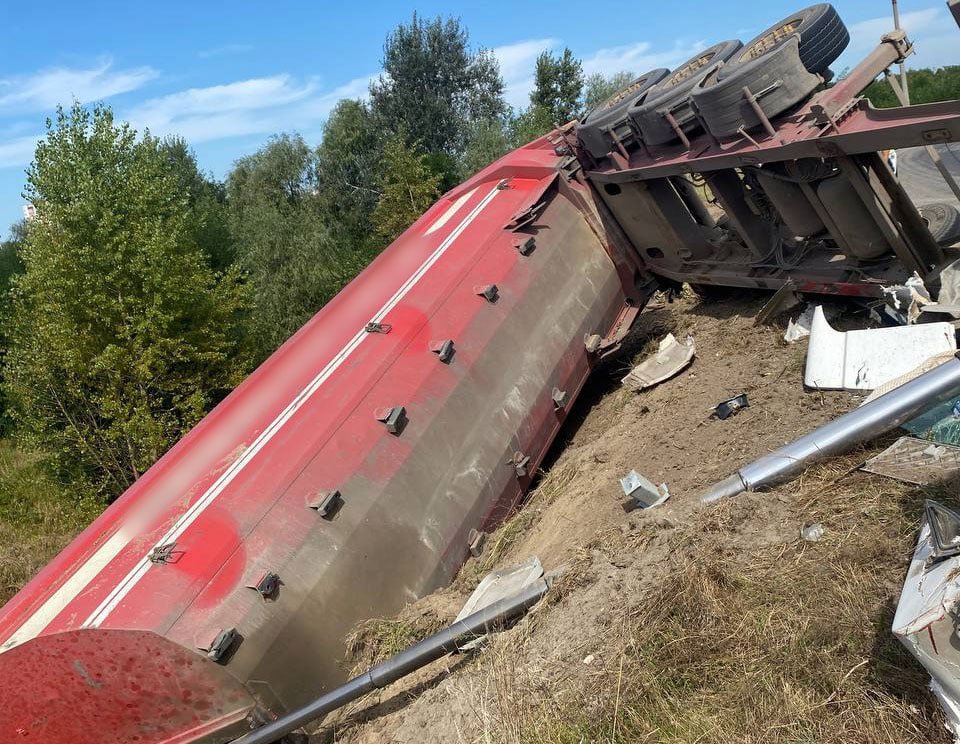 Сьогодні, 6 вересня, на трасі на виїзді с Полтави перекинулася вантажівка з причепом.