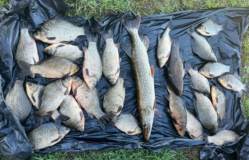 Під час візуального обстеження поліцейські знайшли близько 20 кілограмів риби різних видів, серед яких: карась, щука, лин та лящ.