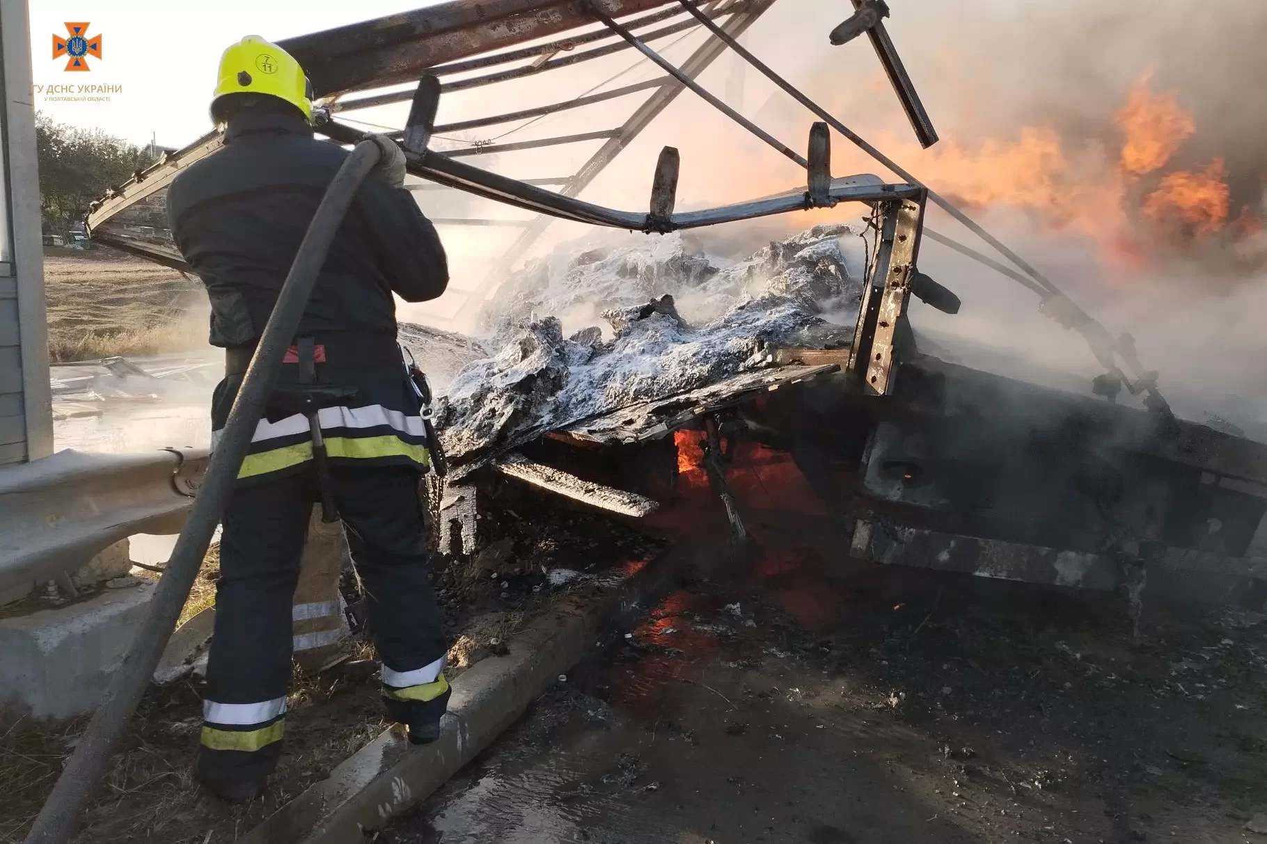 Вчора, 12 жовтня, близько 16.13, на автодорозі Дніпро — Царичанка — Кобеляки — Решетилівка в Полтавському районі згорів вантажний автомобіль. Про це повідомили у Головному управлінні ДСНС у Полтавській області.