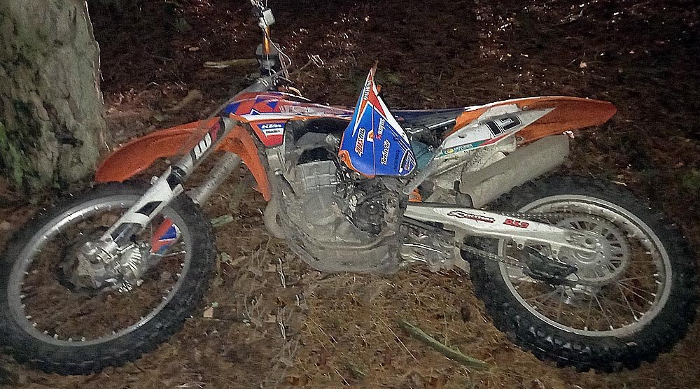 За попередньою інформацією слідства, під час руху у лісі мотоцикл КТМ, яким керував 28-річний чоловік зіткнувся з деревом.