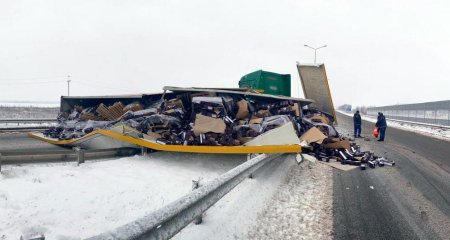 За попередньою інформацією, перекинулась вантажівка Renault Magnum. Поліція з’ясовує обставини події. Ніхто не постраждав.