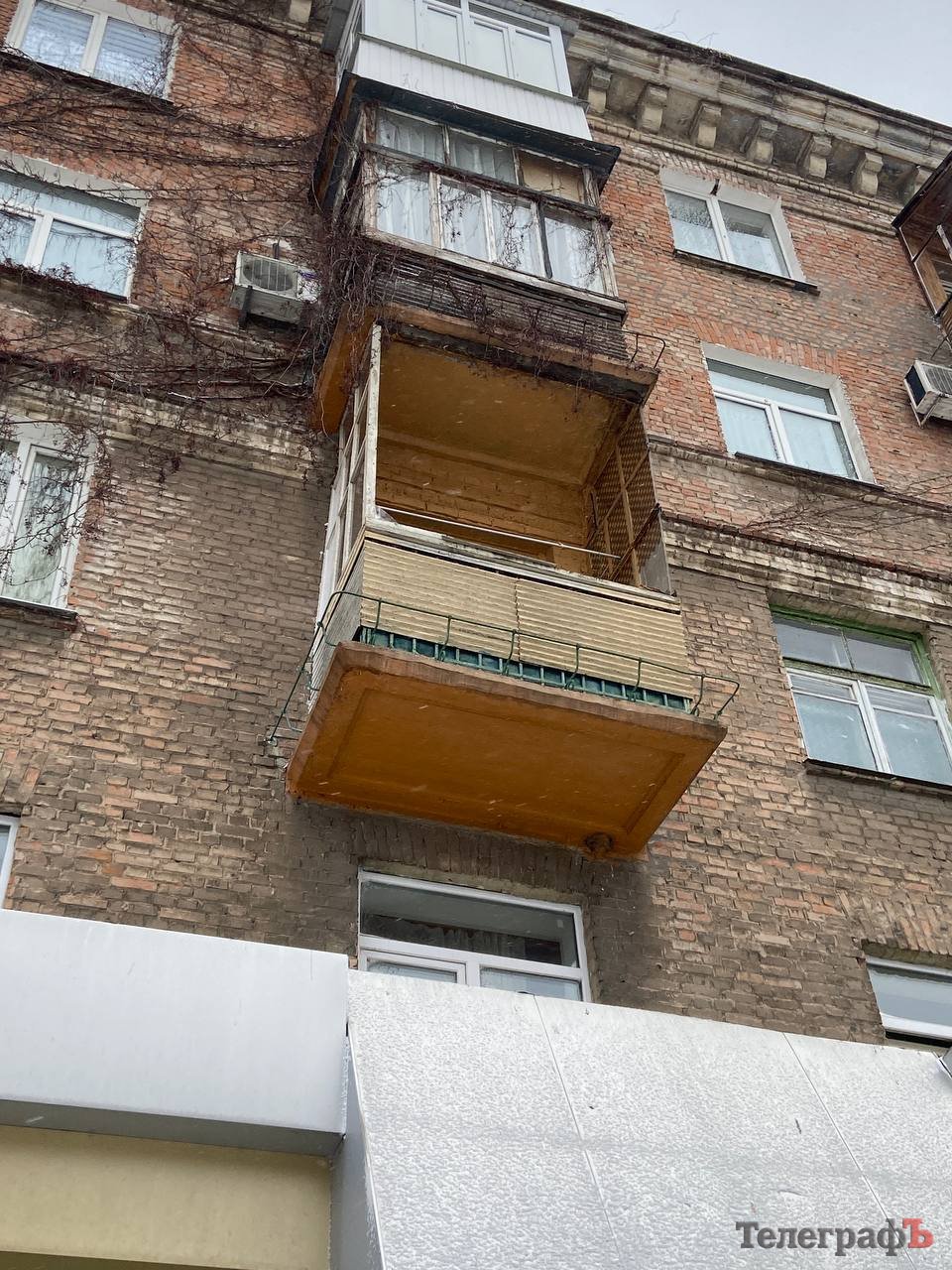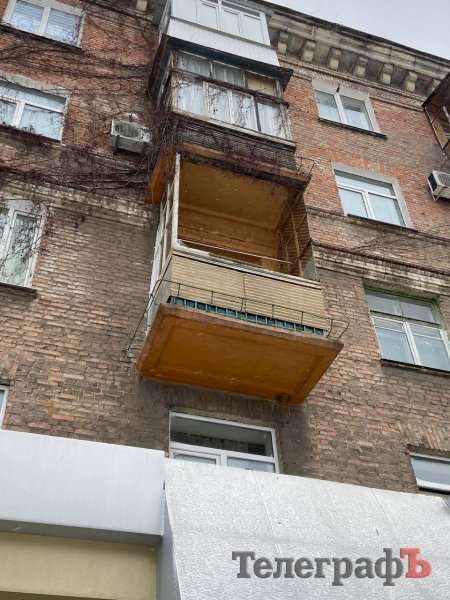 На вулиці Соборній у центрі Кременчука вітер відірвав шматки балконної рами, які упали прямо на тротуар.