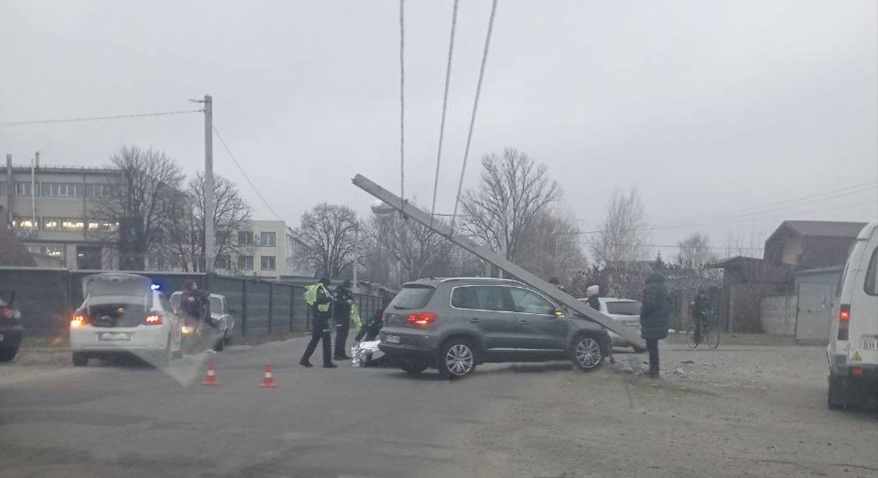 Попередньо, автомобіль Volkswagen під час руху на слизькій ділянці дороги злетів з проїзної частини, де в’їхав у електроопору. У цей момент там проїжджала жінка на велосипеді, вона отримала травми, діагноз поки невідомий.