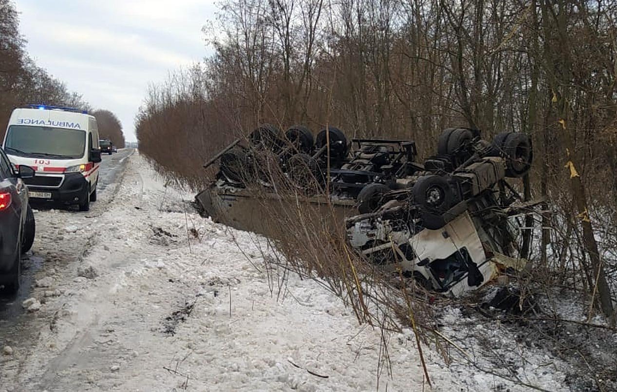 За попередньою інформацією слідства, вантажний автомобіль MAN, яким керував 67-річний водій, виїхав за межі проїзної частини дороги та перекинувся.