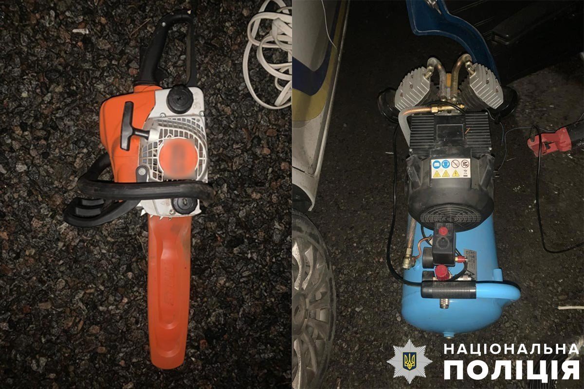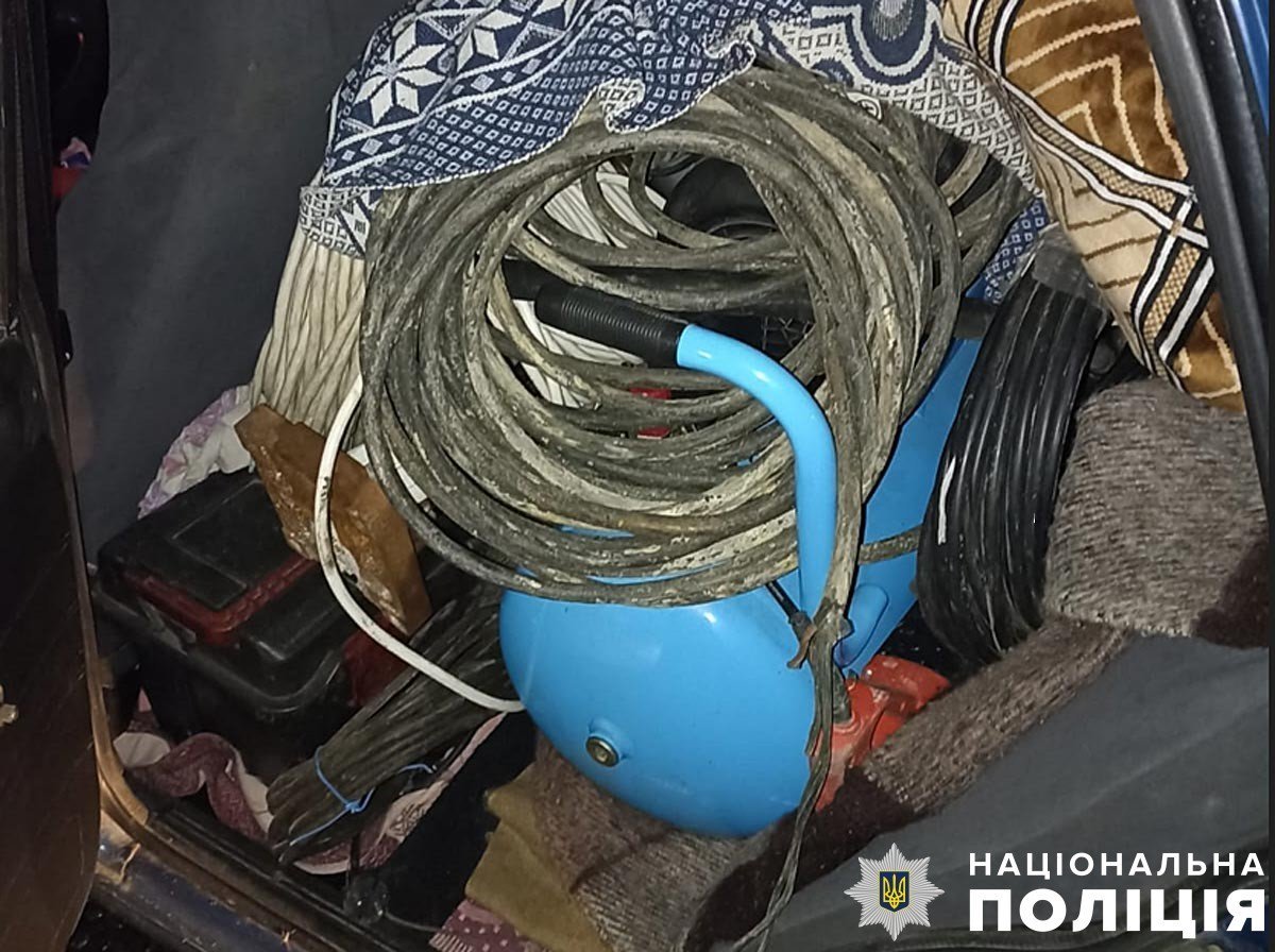Автомобіль ВАЗ, на якому пересувалися злочинці, поліціянти виявили під час патрулювання території населених пунктів, де вчинялися злочини. Під час проведення першочергових слідчих дій, правоохоронці вилучили з транспортного засобу електроінструменти, дроти, техніку, знаряддя, яке використовувалося для проникнення до будинків, обріз мисливської рушниці та інші речові докази, які підтверджують причетність громадян до скоєння серії крадіжок. А також встановили кілька потерпілих, які впізнали своє майно.