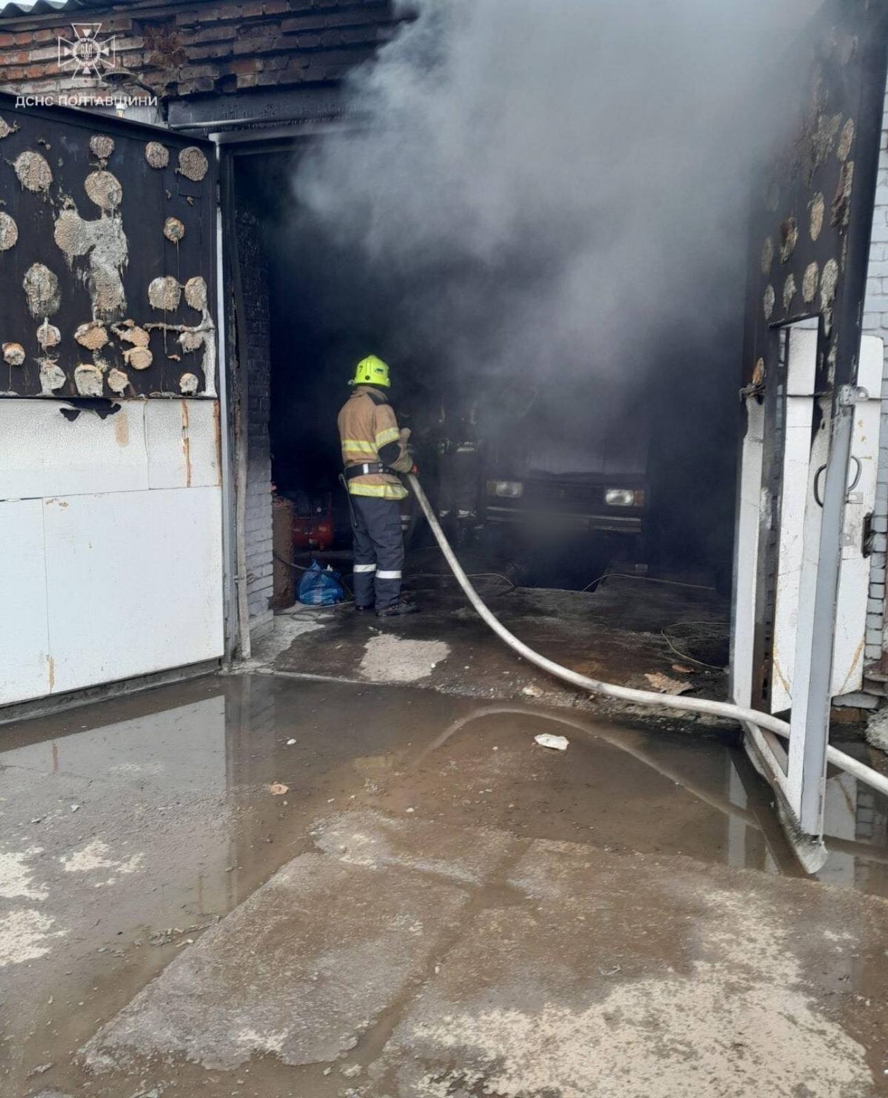 Пожежу загасили о 15.40. Вогонь знищив моторний відсік та салон автомобіля. А також закоптив стіни та стелю цегляного гаража.