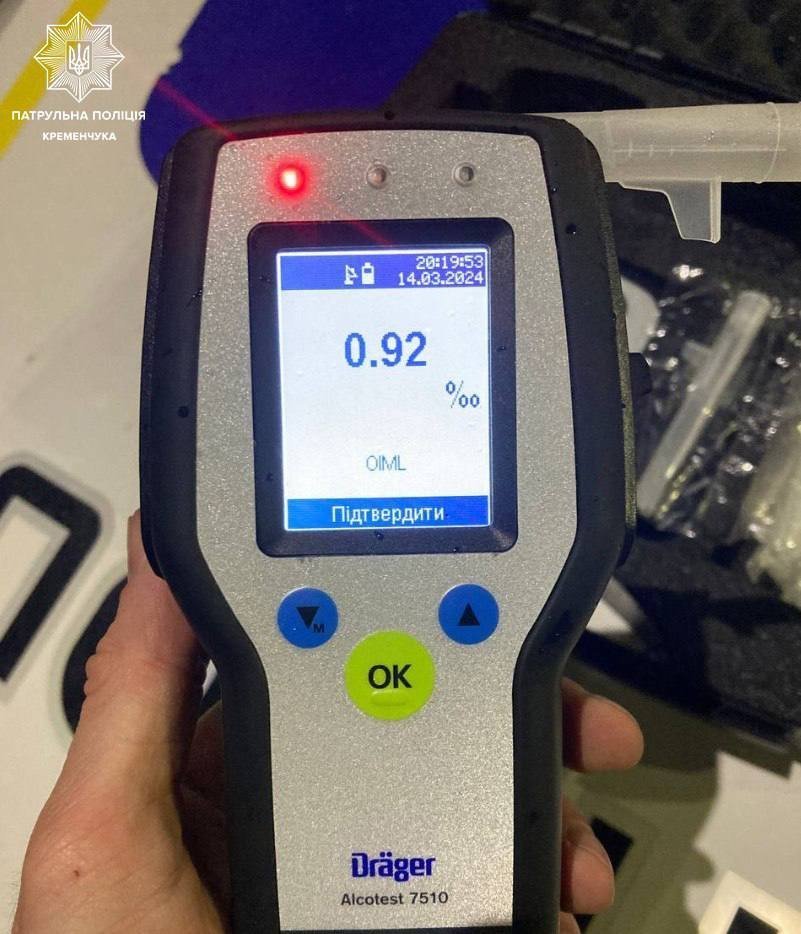 На місці події правоохоронці виявили, що водійка була п’яною, а значення проміле майже у 5 разів перевищує допустиму законом норму.