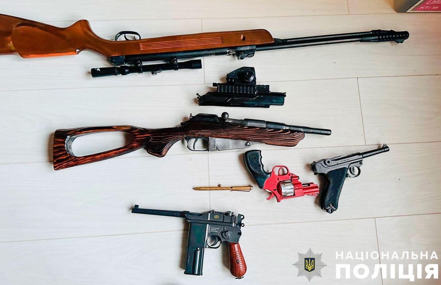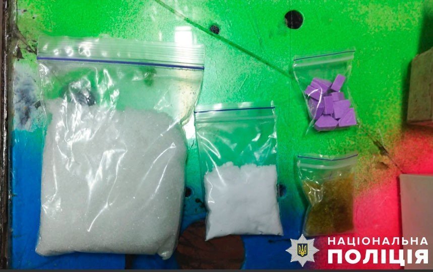 За словами начальника поліції Полтавщини Євгена Рогачова, під час обшуків у затриманих виявили понад десяток зіп-пакетів з канабісом, амфетаміном та метамфетаміном, пістолети, автомати та набої різного калібру, магазини з набоями до автомата Калашникова, танковий кулемет і кулеметну стрічку з набоями, а також ножі та частини механізмів й деталі до автоматичної зброї. Крім цього, як речові докази правоохоронці знайшли також чорнові записи, електронні ваги, понад 1300 зіп-пакетів для фасування наркотиків, мобільні телефони, сім-карти та гроші.