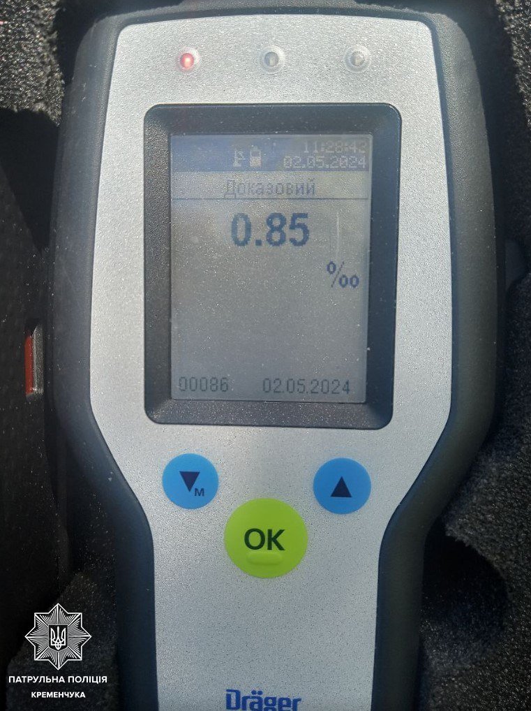 Як показав результат алкотестера, вміст алкоголю в організмі водія становив 0,85 проміле, що у понад 4 рази більше допустимої норми.