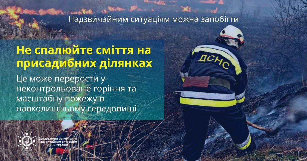Надзвичайники радять не нехтувати протипожежними заходами на присадибних ділянках, а якщо ви стали свідком пожежі на відкритій території — негайно телефонуйте до Служби порятунку за номером «101».