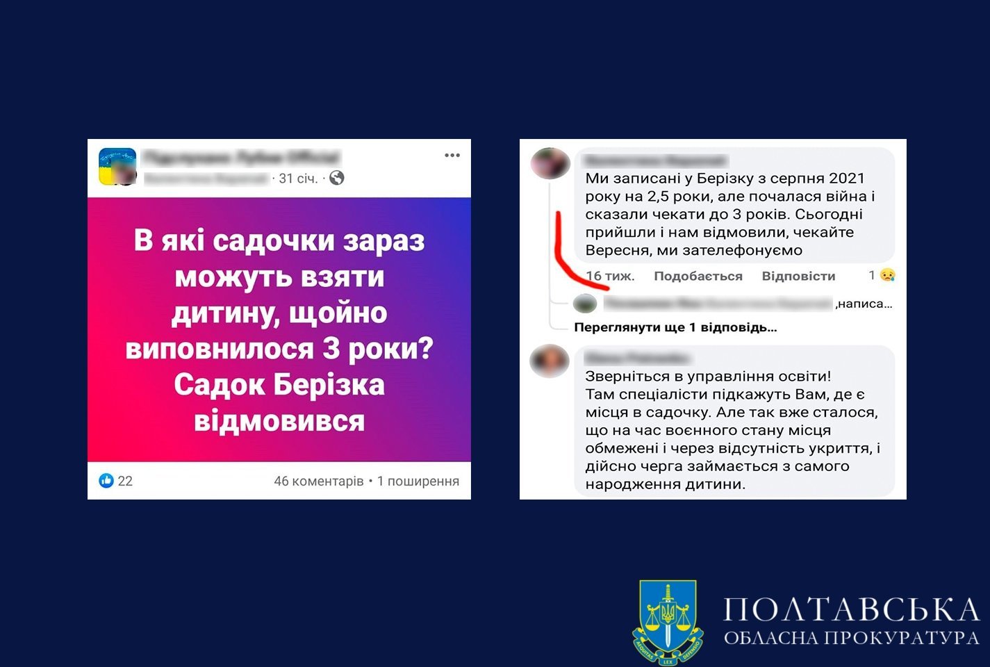 Законодавство забороняє використовувати об’єкти та майно державних і комунальних закладів освіти не за цільовим призначенням. Окрім того, в соціальних мережах мешканці Лубен скаржилися на неможливість влаштувати дитину до дитячого садка через відсутність вільних місць.