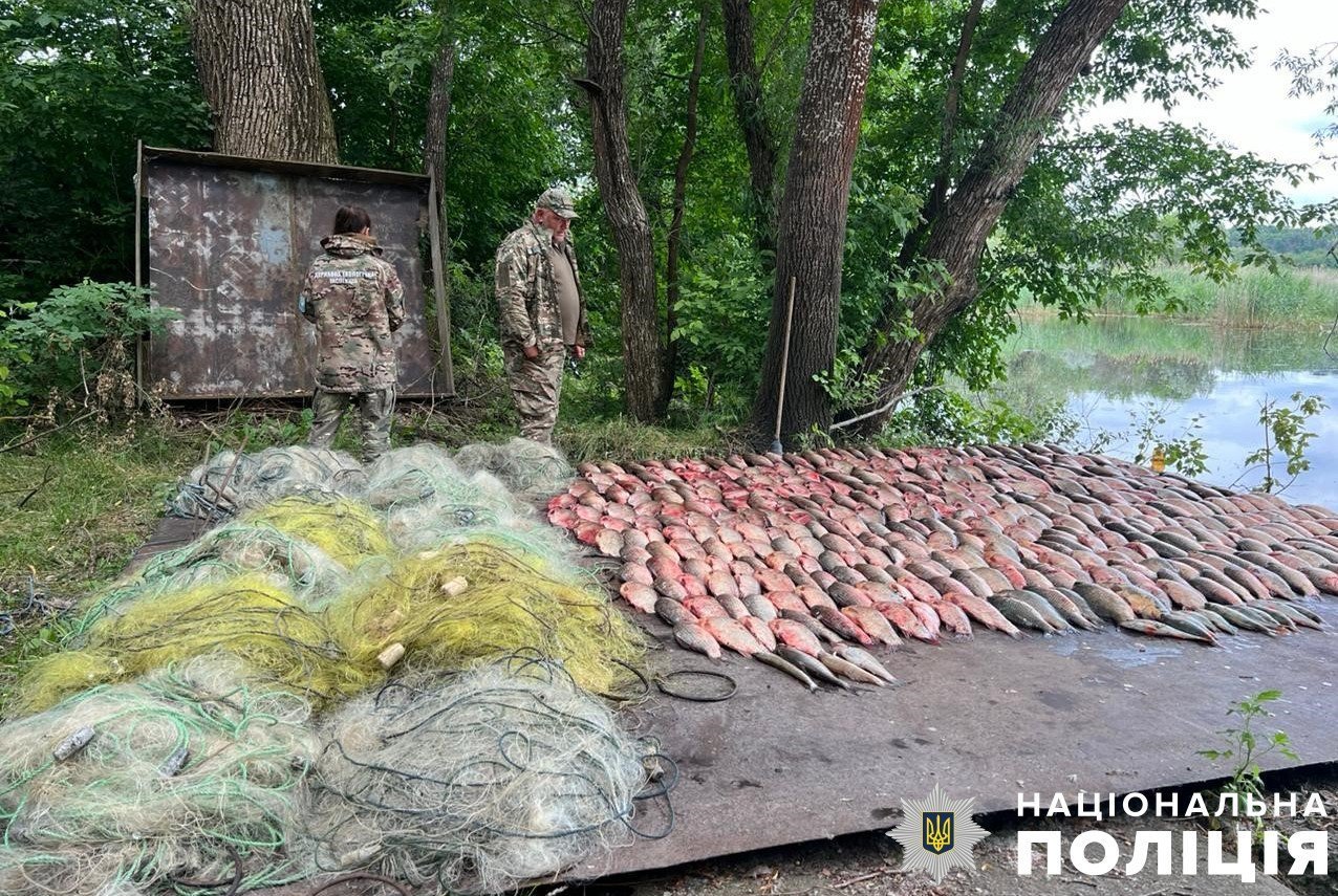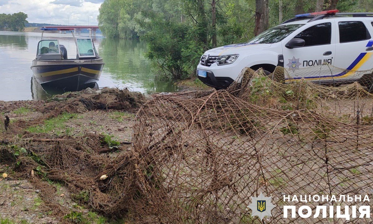 Протягом 12-14 червня поліцейські спільно з екологічною інспекцією вилучили понад 1,5 км браконьєрських сіток та 2 ятіра з акваторії Дніпра у Кам’янському водосховищі та акваторії Сулинського заказника Кременчуцького водосховища.
