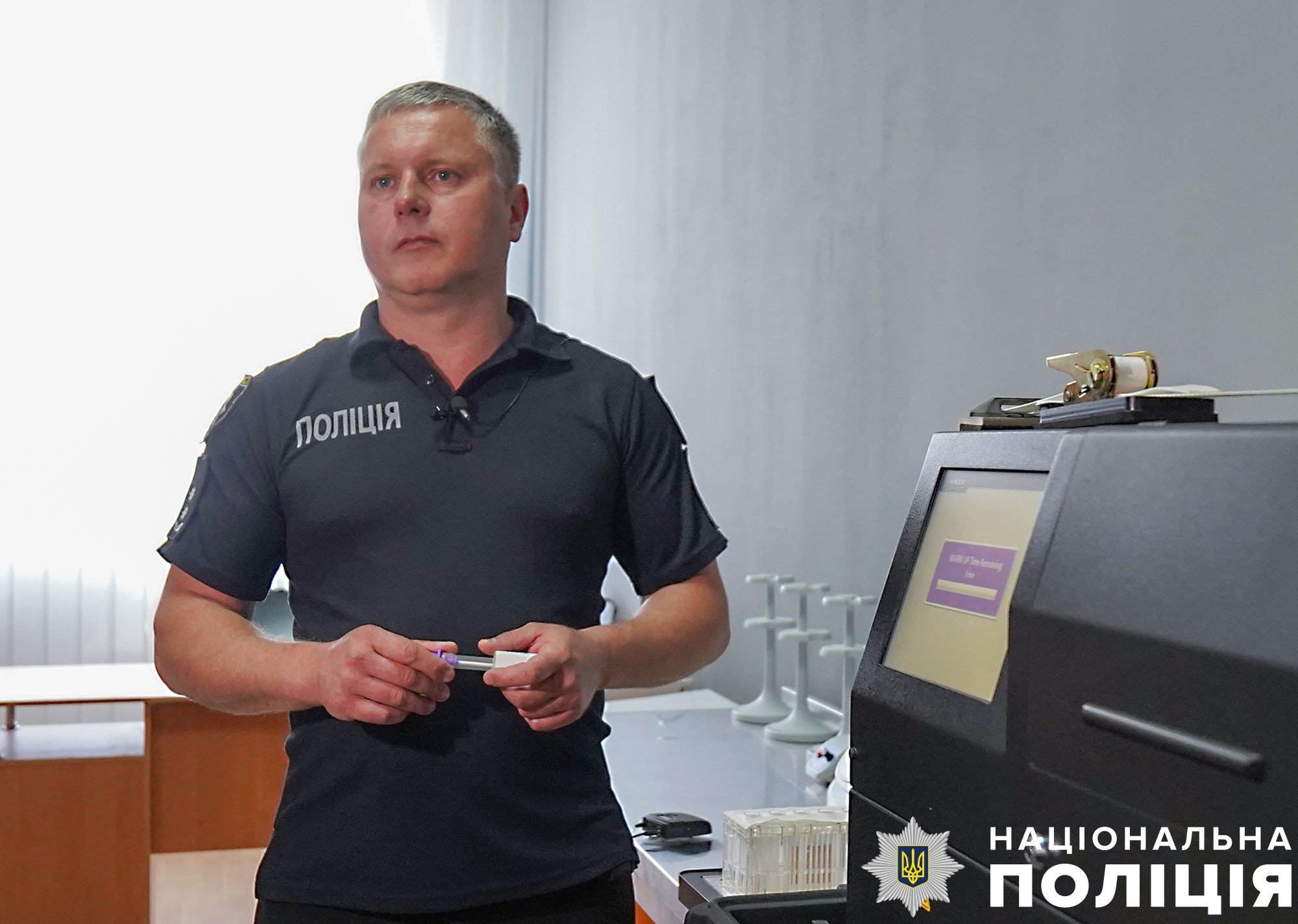 Його беруть методом зіскрібання спеціальним аплікатором з внутрішньої поверхні щоки. Зразки біологічного матеріалу направляють на експрес-тест, який проводять спеціалісти-криміналісти Слідчого управління за допомогою технічного приладу Andy 6C.