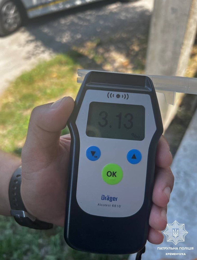 Інспектори запропонували водієві пройти огляд на стан алкогольного сп’яніння за допомогою алкотестеру. Результат показав 3,13 проміле, що у понад 15 разів перевищує допустиму норму.