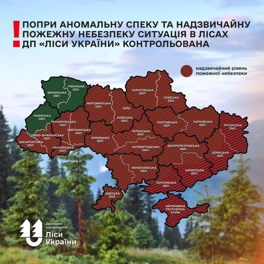 За інформацією лісівників, лише за цей час в Україні було зафіксовано 28 лісових пожеж на площі 8,8 га. Зазвичай лісова пожежна охорона встигала вчасно відреагувати на загоряння, тож вогонь не ширився територією понад 0,3 га площі.