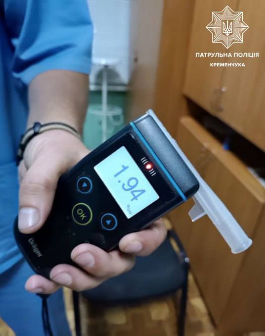 20 серпня близько 23.00, на проспекті Полтавському у Кременчуці патрульні зупинили ВАЗ за порушення правил дорожнього руху. Під час спілкування з водієм інспектори помітили у нього ознаки алкогольного сп’яніння. Результати огляду показали 1,94 проміле алкоголю в крові, що майже у 10 разів перевищує допустиму норму. Про це повідомила пресслужба патрульної поліції.