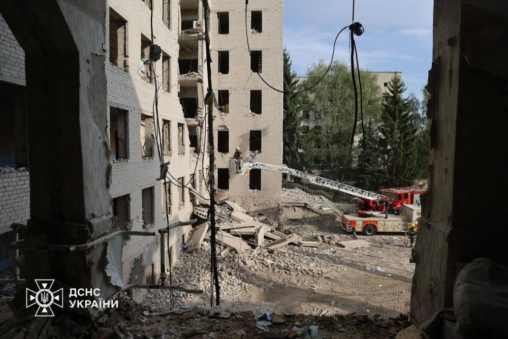 Частково зруйнована одна з будівель Інституту зв’язку, багато людей опинились під завалами. За інформацією відомства, часовий проміжок між тривогою і прильотом був настільки коротким, що застав людей в момент евакуації до бомбосховища. На місці продовжують розбір завалів.