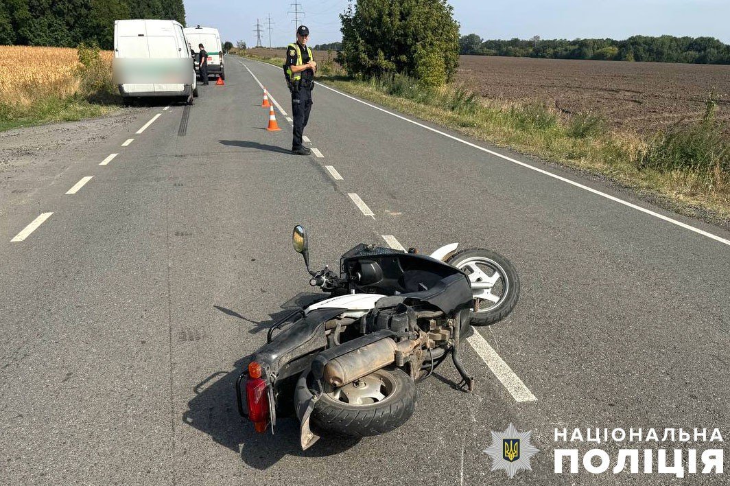 4 вересня близько 13.00 на автодорозі Лубни-Чорнухи, неподалік села Калайдинці Лубенської територіальної громади, сталася дорожньо-транспортна пригода. Про це повідомляє пресслужба поліції Полтавщини. За попередніми даними слідства, автомобіль Ford Transit, керований 34-річним водієм, зіткнувся з мопедом Yamaha Gear, за кермом якого перебував 78-річний чоловік.