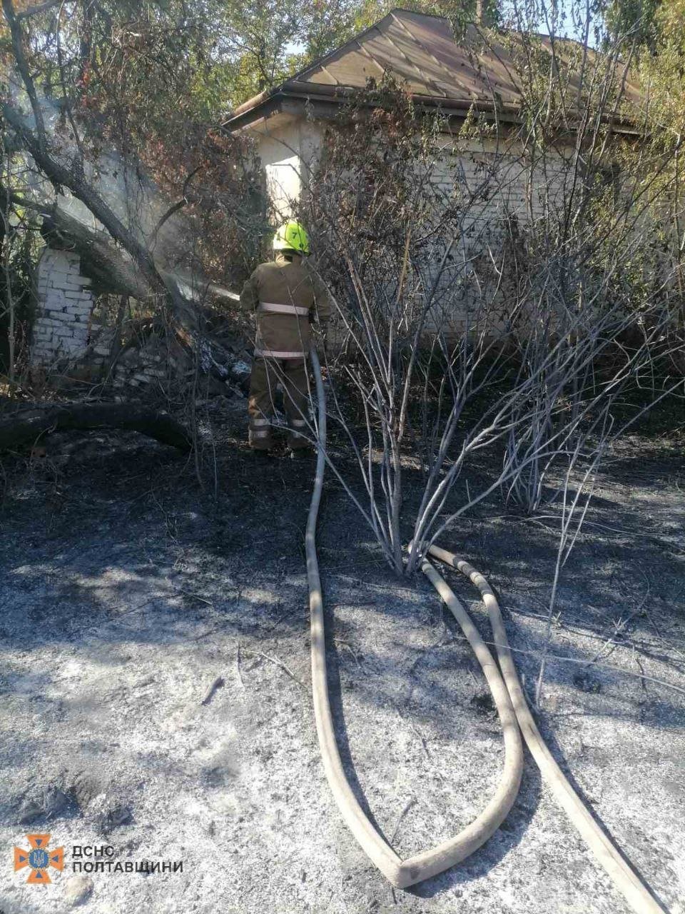 Ще одне загоряння господарської споруди сталося близько 09.58 у селі Козельщинської громади. Ліквідували вогонь пожежники о 10.37 — до того, як він встиг перекинутися на розташований поруч житловий будинок. Гасили пожежу рятувальники 7-го державної пожежно-рятувального посту.
