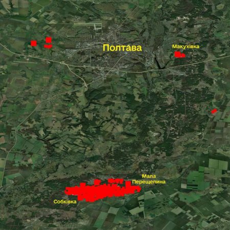 Нагадаємо, що займання виникло 15 вересня поблизу села Мала Перещепина у Полтавському районі близько 16.40. У соцмережах, посилаючись на NASA, візуалізують масштаби пожеж під Полтавою так: