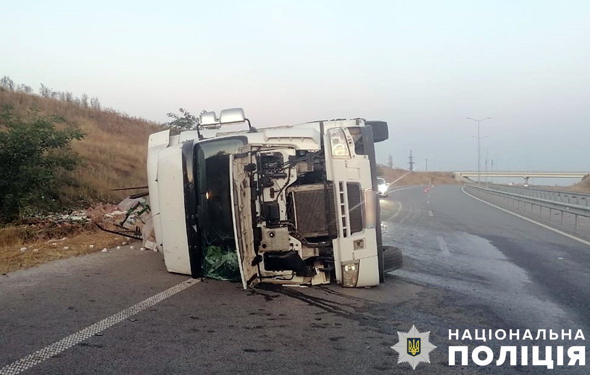 За попередніми даними, вантажівка Renault, якою керував 50-річний житель Кіровоградщини, з’їхала з дороги та перекинулася. На місце події приїхали поліція та рятувальники.
