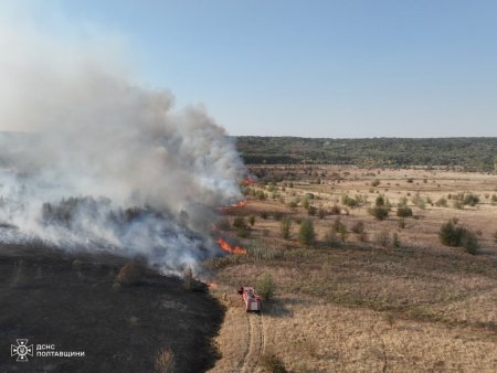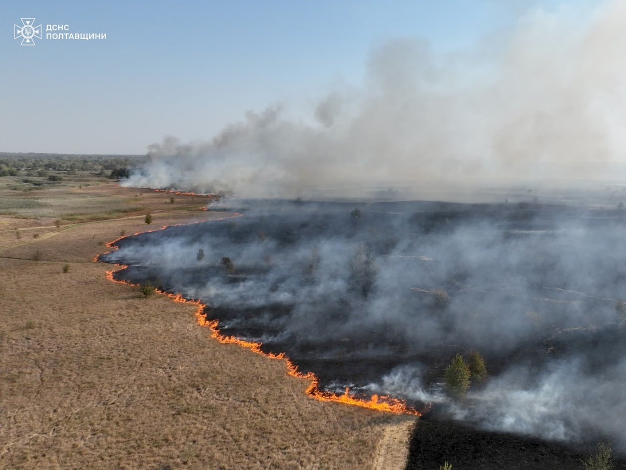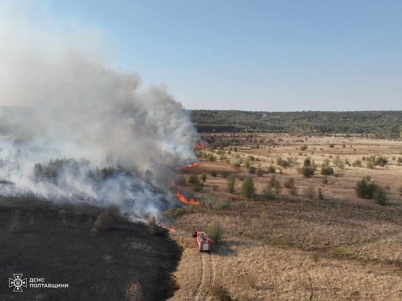Гасили вогонь 72 представники особового складу ДСНС за допомогою 12 пожежних машин та 20 лісників і 4 одиниці спецтехніки Полтавської філії ДП «Ліси України».