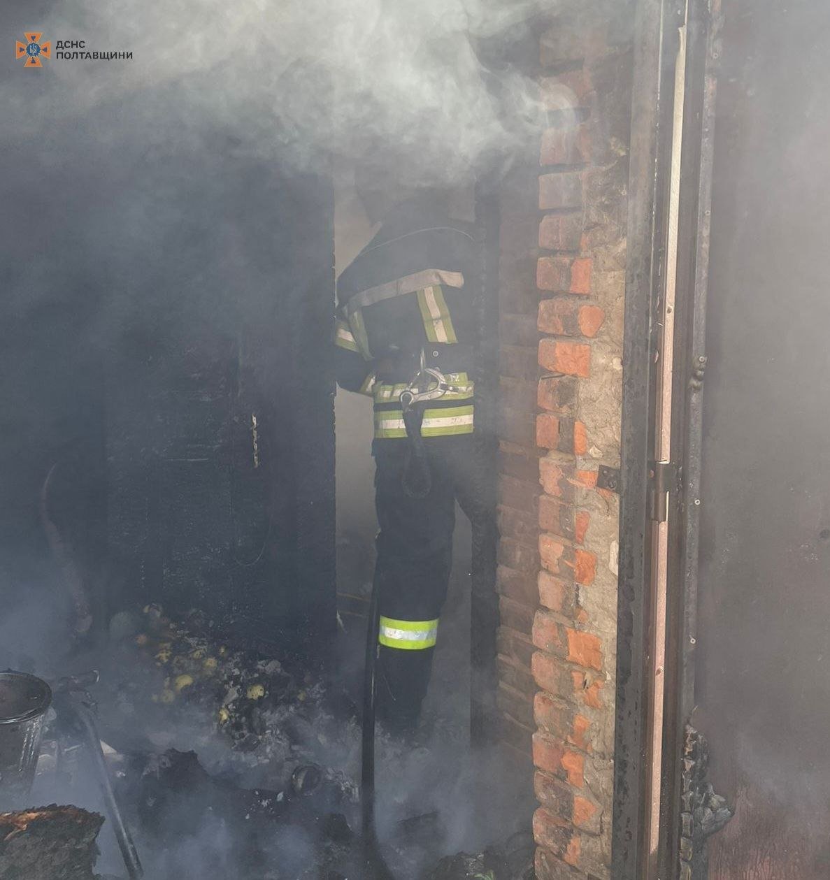 Вогонь знищив дерев’яну покрівлю, дерев’яні меблі всередині приміщення, мотоблок, три вікна та інші побутові речі.