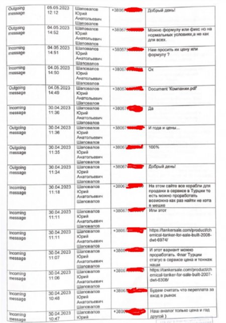 Також Шаповалов нібито надсилає декілька посилань на оголошення про продаж нафтових танкерів у Туреччині, щоб обговорити їх покупку для перевезення нафтопродуктів, зокрема й російського походження.