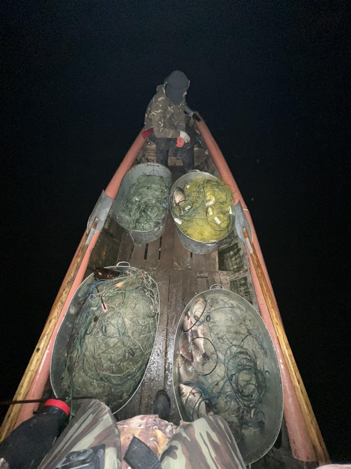 На місце події екологи викликали слідчо-оперативну групу для встановлення факту правопорушення. Човен, сітки та рибу у браконьєрів вилучили.