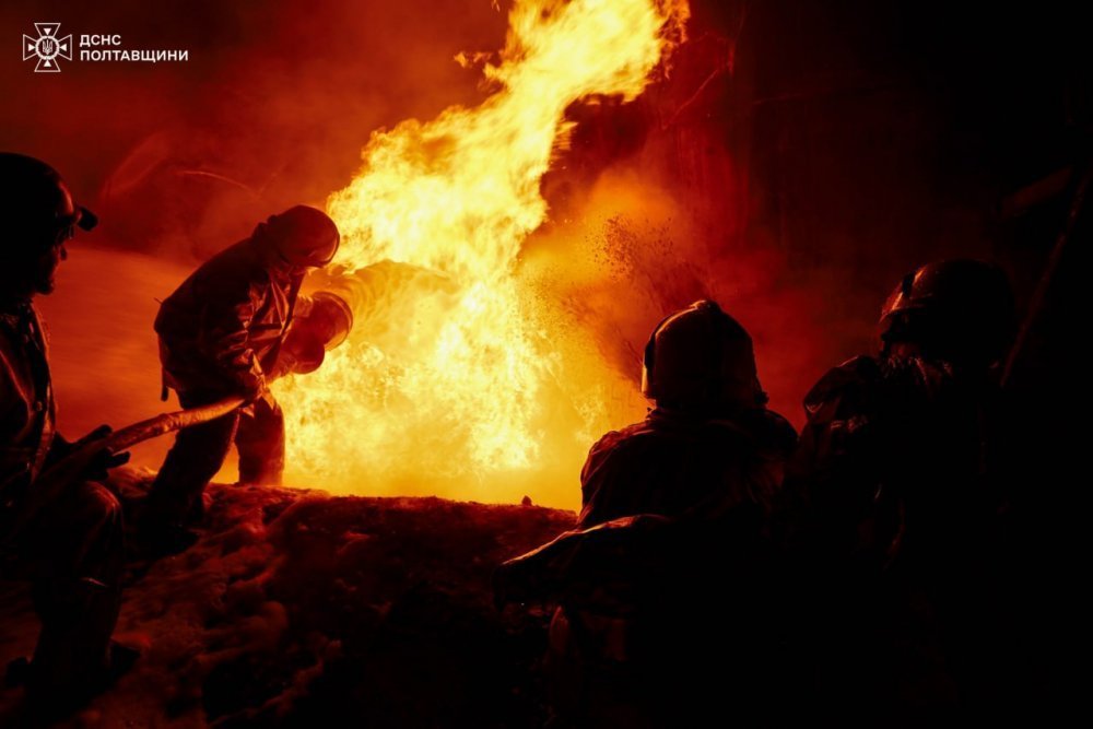 14 листопада пресслужба Головного управління Державної служби надзвичайних ситуацій України у Полтавській області оприлюднила фотографії боротьби надзвичайників з масштабною пожежею, що виникла після влучання дрона у промисловий об’єкт в Миргородському районі.