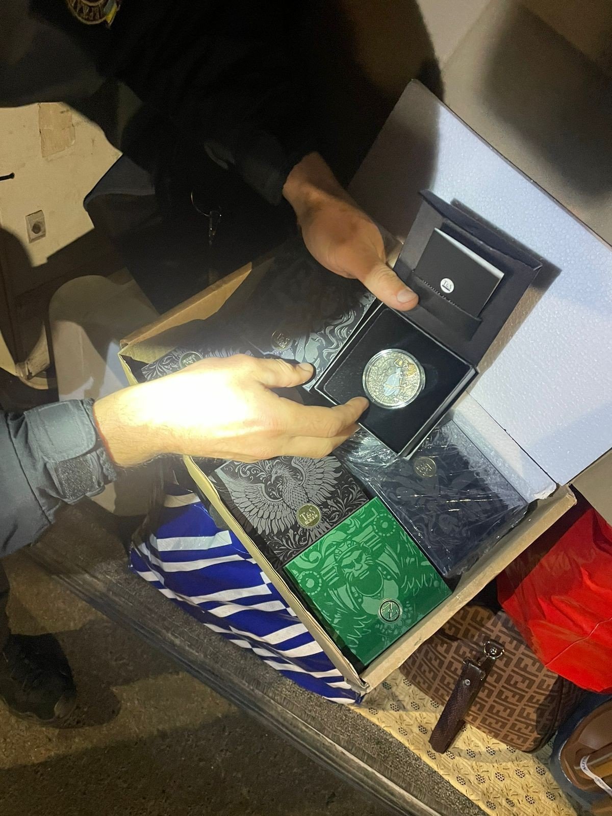 За даними прикордонників, 41-річний житель Полтавщини та його 44-річний колега працювали водіями рейсового автобуса «Рига-Київ». Під час огляду на пропускному пункті у Волинській області у чоловіків знайшли імовірні культурні цінності — 72 срібні монети загальною вагою понад 4 кг, які були викарбувані у Камеруні.
