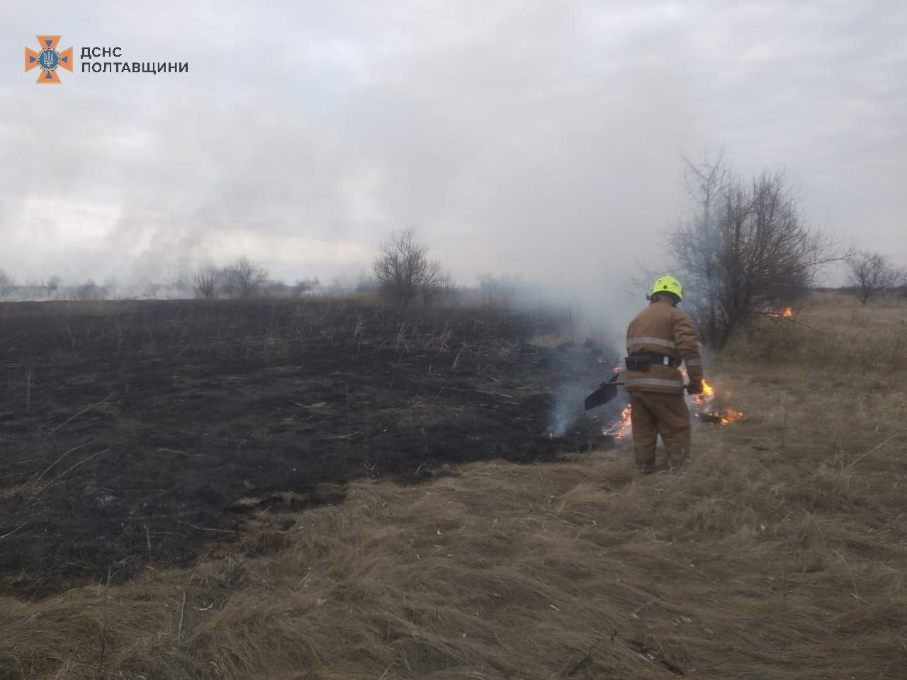 Ще одна пожежа у Козельщині сталася близько 12.52. На місці рятувальники встановили, що горить 1,5 км сухої трави.