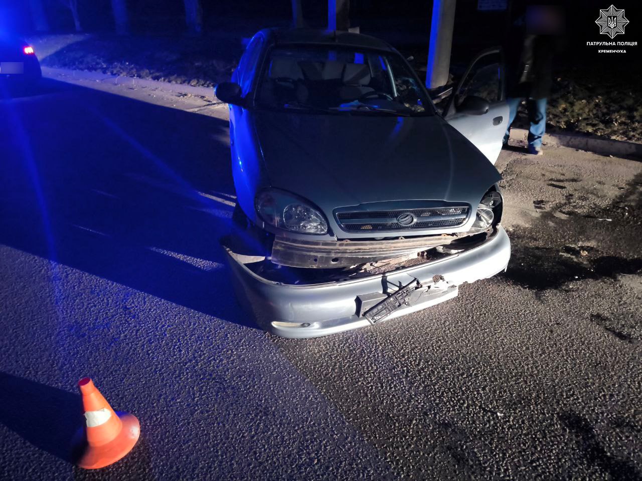 Під час комендантської години водій автомобіля ЗАЗ перевищив безпечну швидкість, не впорався з керуванням, злетів з проїзної частини та врізався в опору рекламного щита.