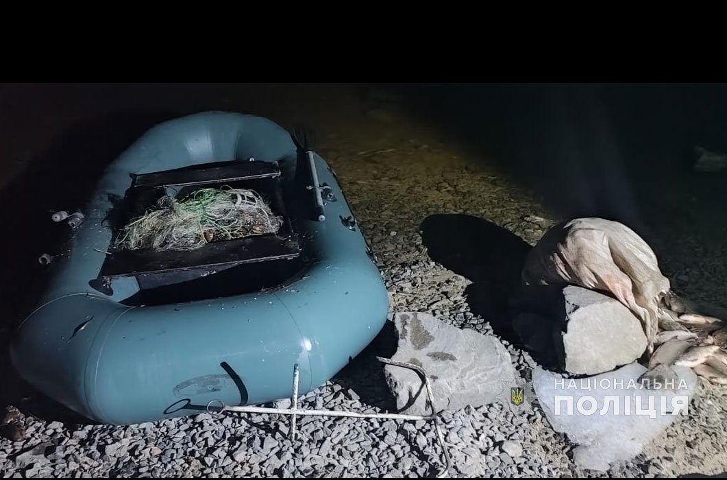 За даними поліції, рибалили чоловіки із гумового човна за допомогою браконьєрських сіток загальною довжиною близько 70 м. Наловили браконьєри встигли наловити майже 40 кг риби.