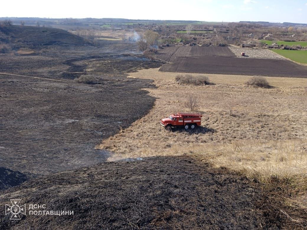 Із 20 на 21 березня рятувальники ліквідували дві пожежі на відкритій території у Глобинському та Кременчуцькому районах. Про це інформують у пресслужбі Кременчуцького райуправління Державної служби надзвичайних ситуацій.