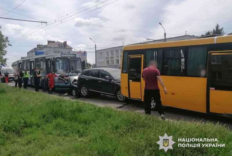 У Полтаві зіткнулися тролейбус, автобус, позашляховик та легковик — травмовано троє людей