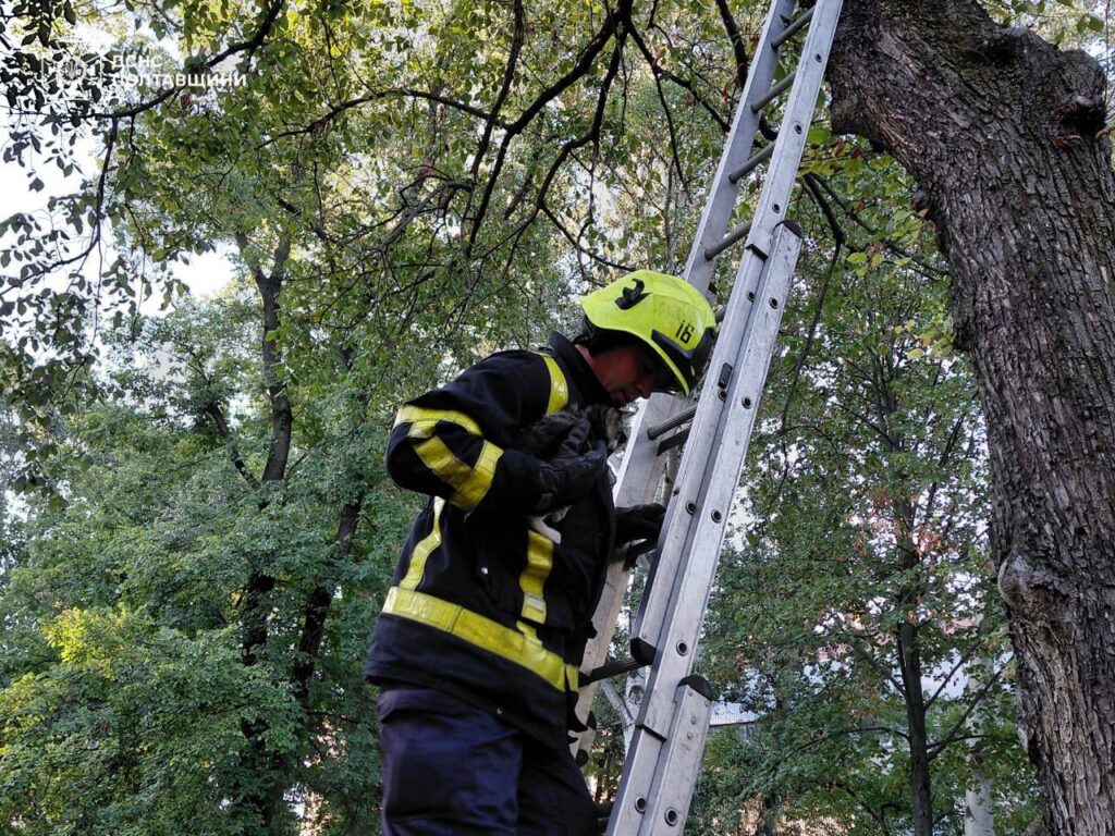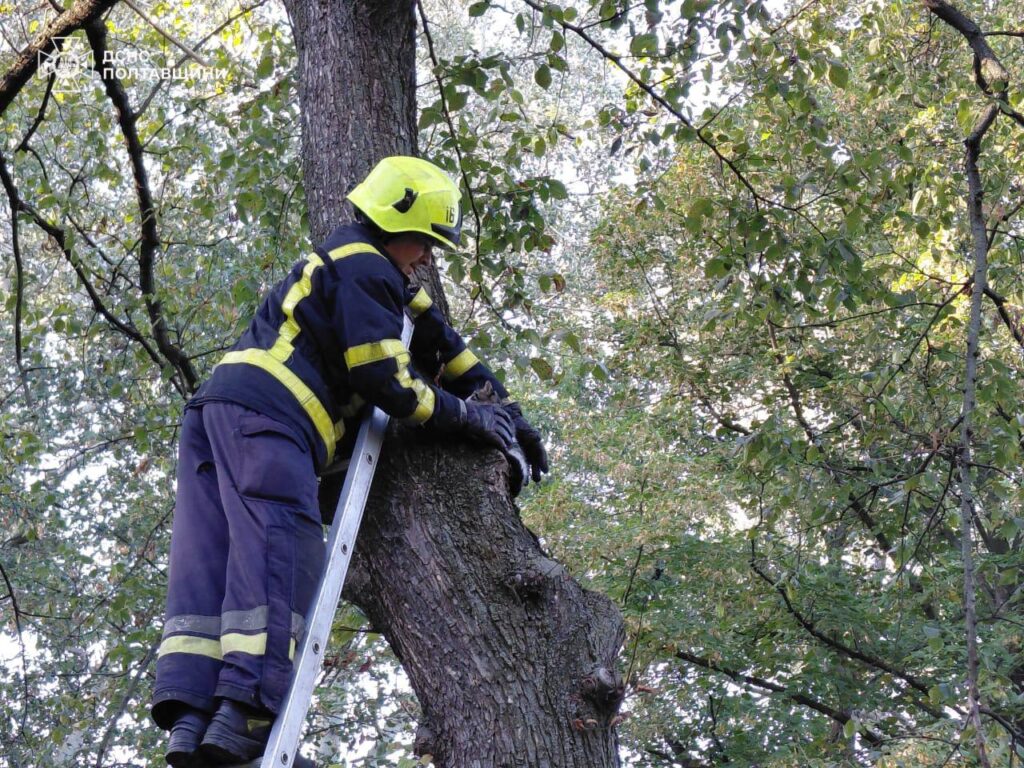 12 серпня у Міському Саду Кременчука рятувальники допомогли коту, який забрався високо на дерево і не міг злізти сам. Про це повідомили у пресслужбі Кременчуцького райуправління Державної служби надзвичайних ситуацій.