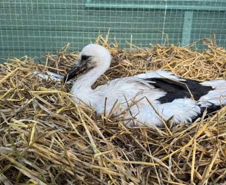Лелеченя доставили до центру порятунку та реабілітації диких тварин. Після огляду ветеринари повідомили, що птах має критично малу вагу, а його поява на світ відбулася пізно, тож він ще зовсім молодий.