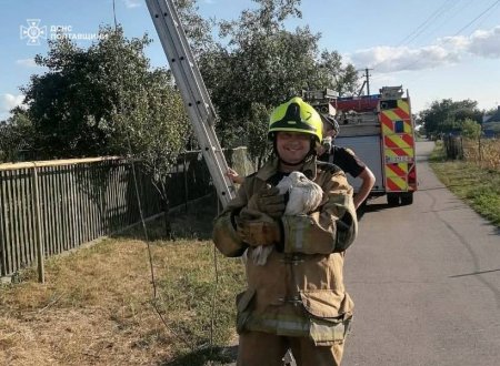 На виклик прибули рятувальники 7-го державного пожежно-рятувального поста. Використовуючи трьохколінну драбину, вони обережно дістали пташеня та спустили на землю.