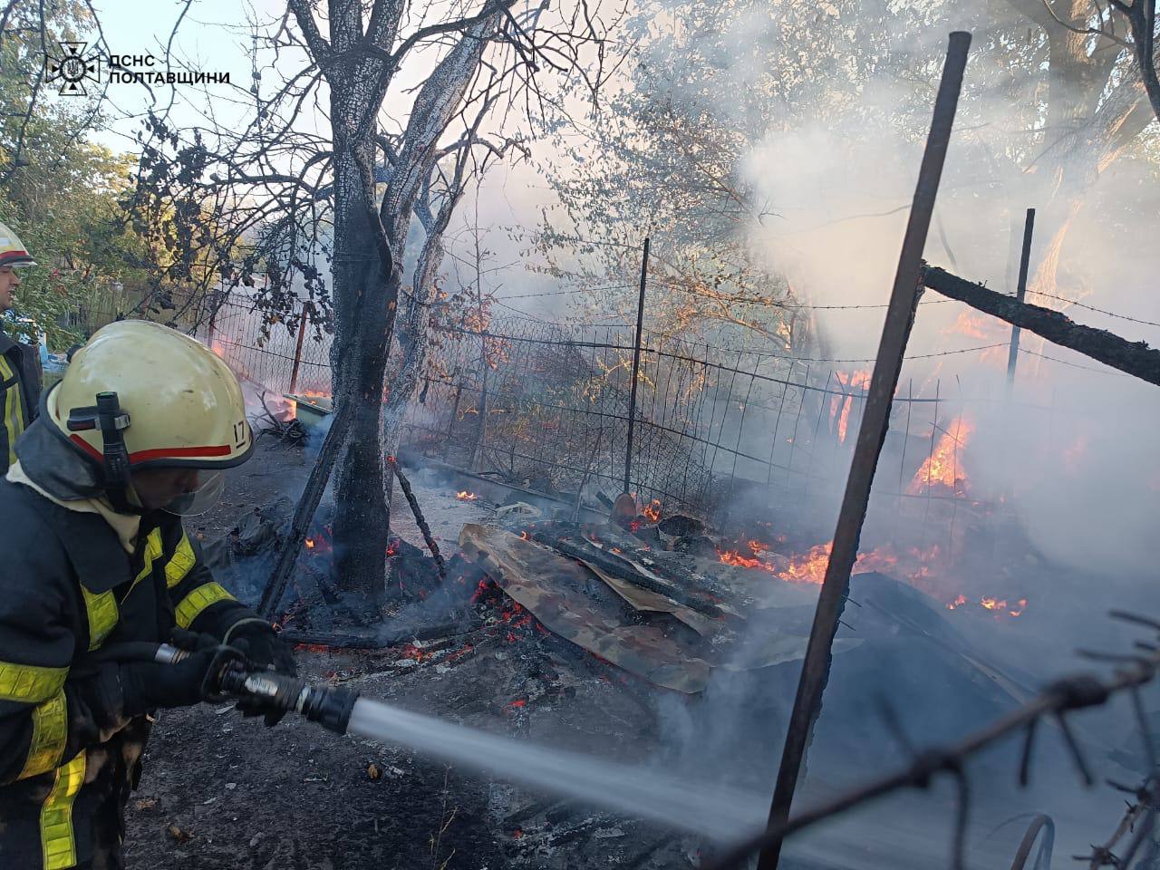 У садовому товаристві Горішньоплавнівської громади згоріла дерев’яна господарча споруда та суха рослинність із гіллям на площі 36 м². Вогнеборці 17-ї державної пожежно-рятувальної частини запобігли поширенню полум’я на більшу площу.